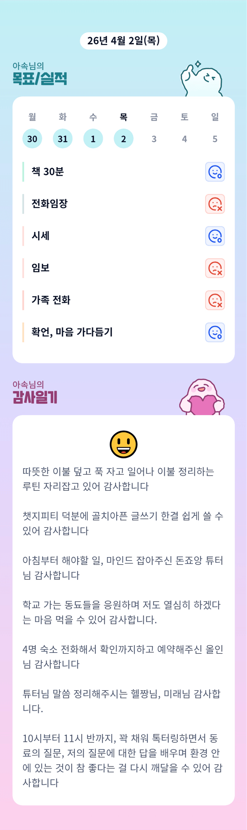 속장님 감사합니다! 이번주 바로 분임이신가요~ 화이팅입니다!!