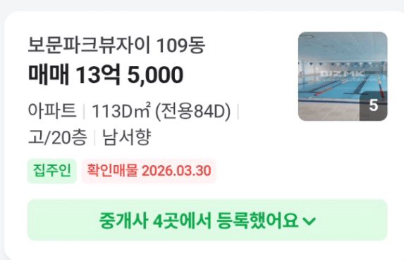 그사이 1.2억이 올랐네요(1년만에..)