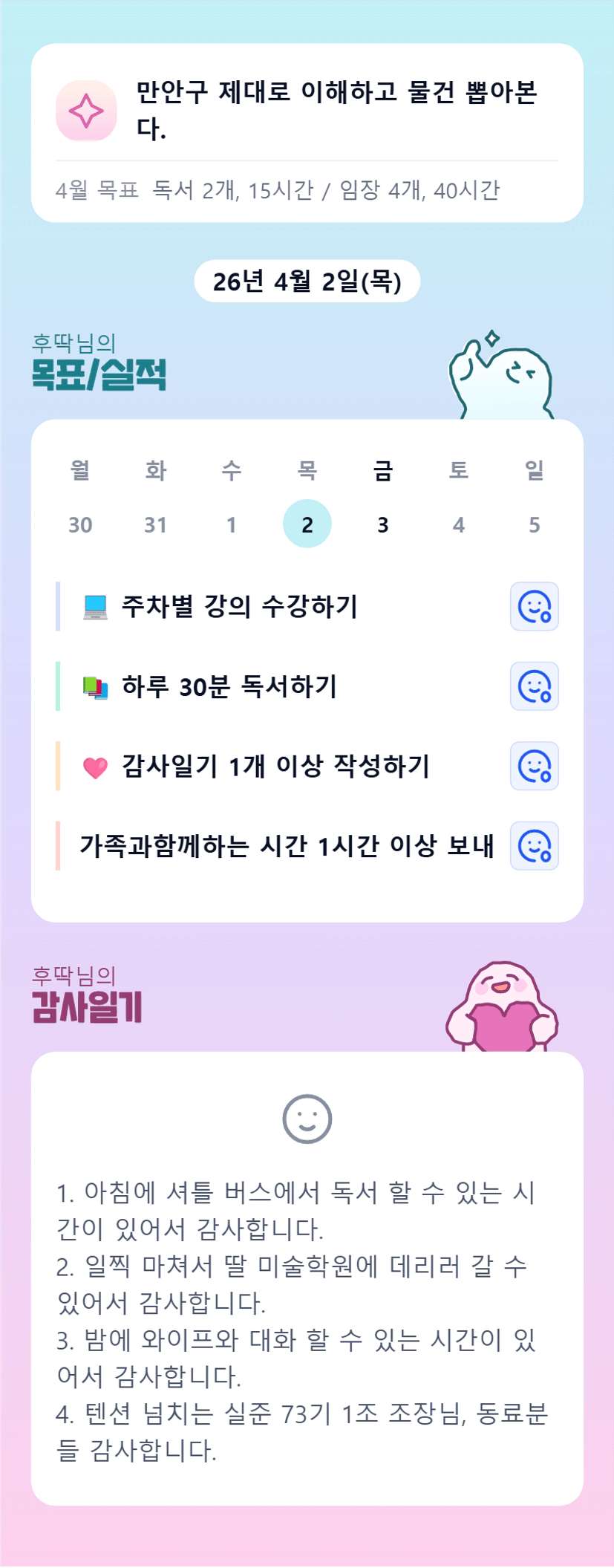 유쾌하신 후딱님 ㅎㅎㅎ 저도 함께해서 너무 좋아요 ㅎㅎ 한달동안 잘 부탁드려요!!