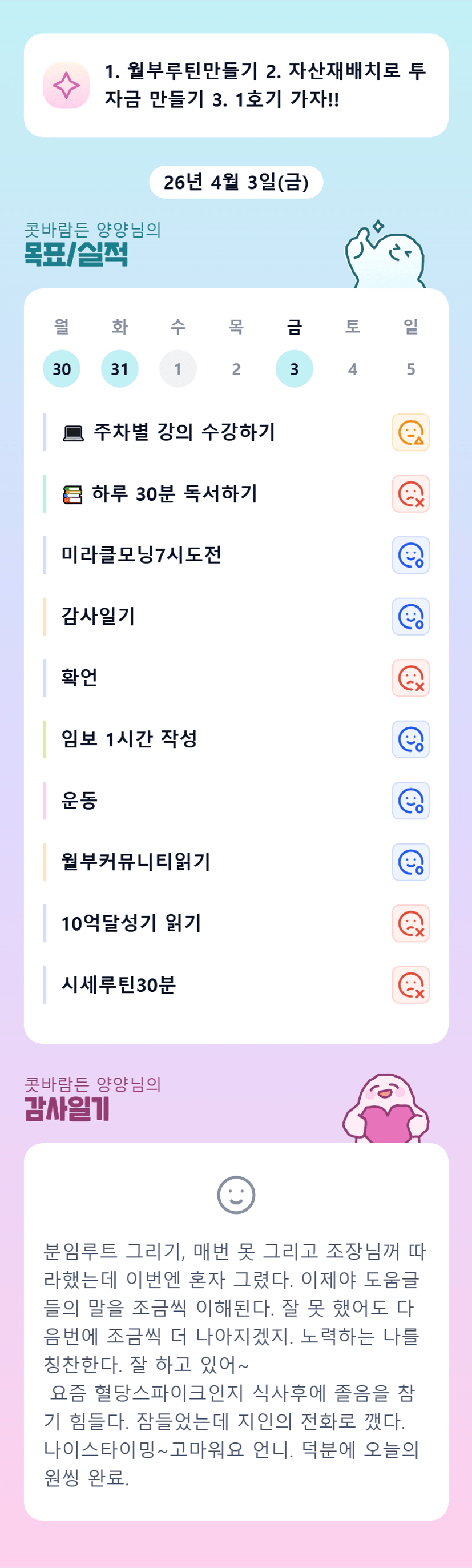 양양님 루트 너무 잘 그리셨어요! 이번 달도 성장하실 수 있게 열심히 돕겠습니다:)