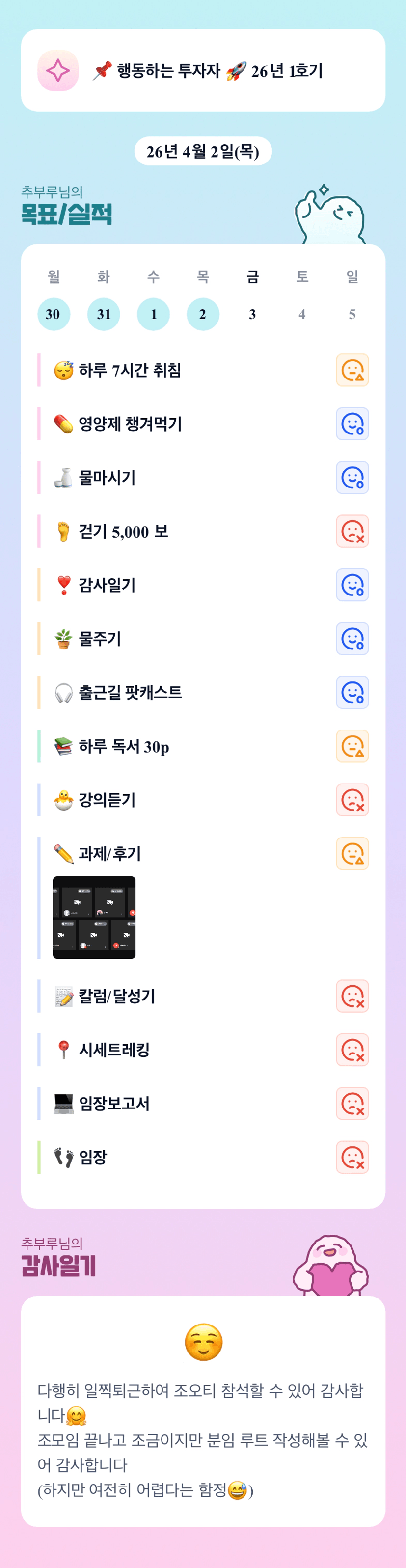 행동하는 투자자 너무 멋있네용 26년 1호기 가으쟝~~!!