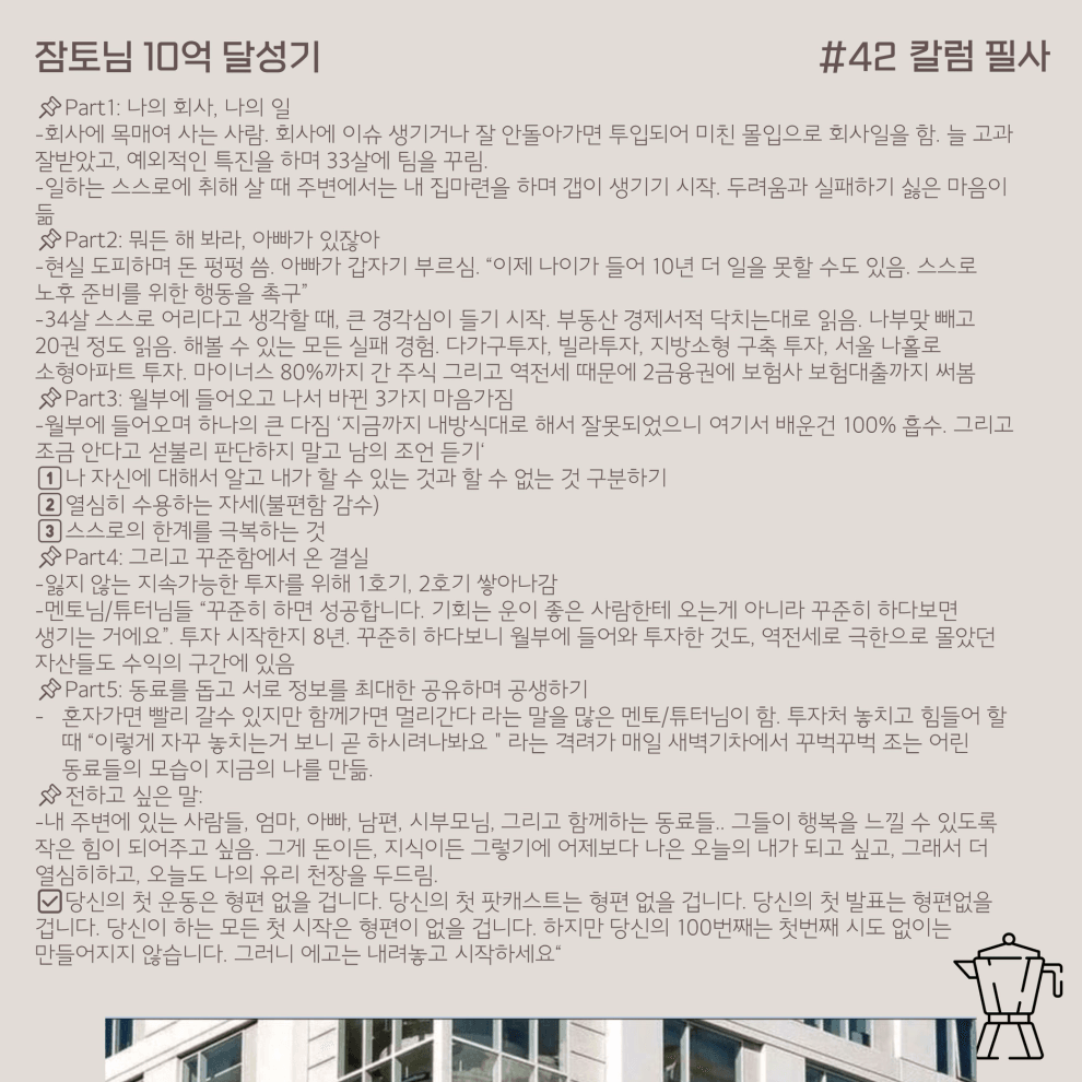 잠토님 10억 달성기: https://cafe.naver.com/wecando7/11610065