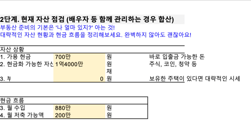 1단계. 현재 자산 점검 (배우자와 함께 관리하는 경우 합산)