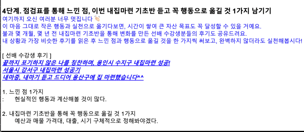 2. 내집마련 기초반을 통해 꼭 행동으로 옮길 것 1가지