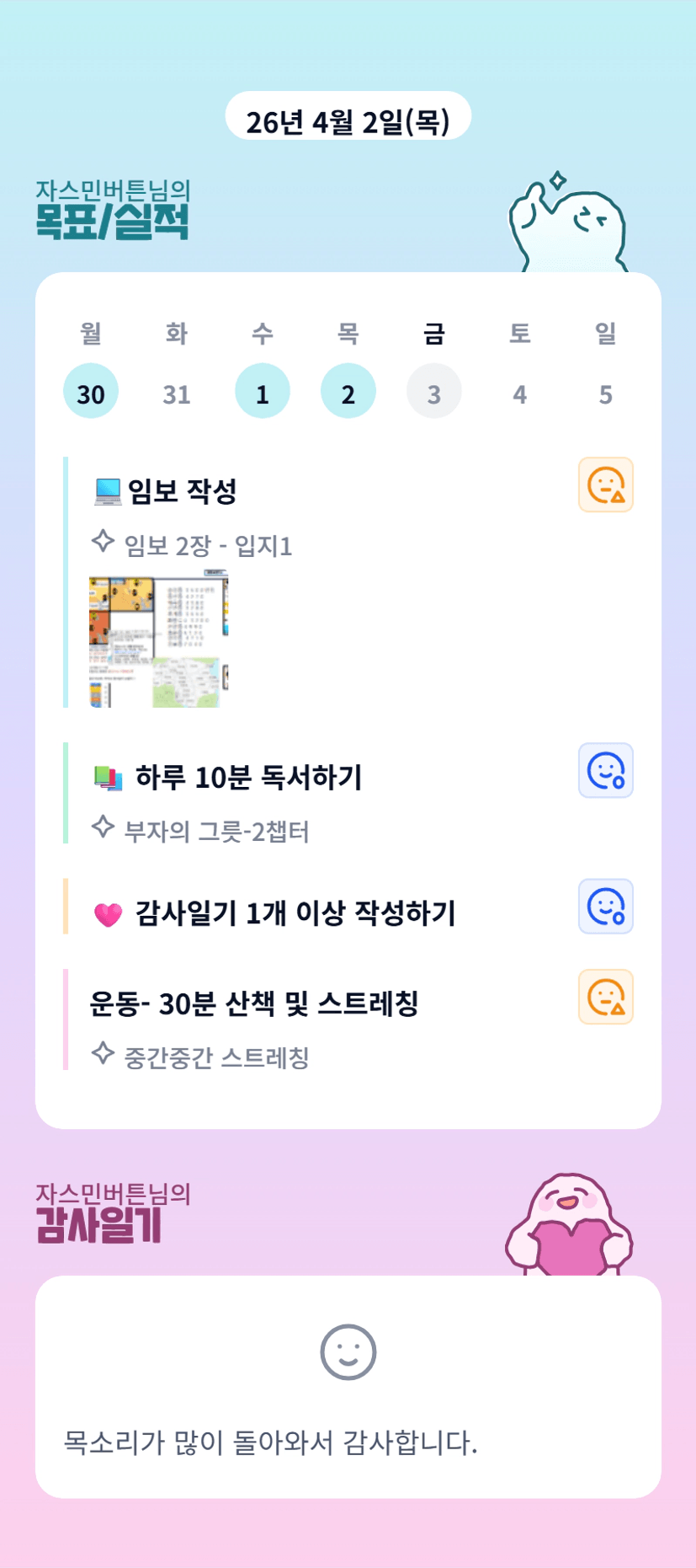 자스민님~ 건강관리 빠이팅입니다.❤️