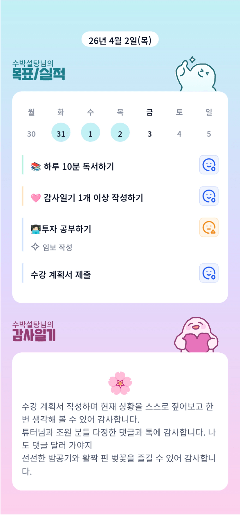 설탕님^^요즘 선선한 날씨에 벚꽃 너무 이쁜 것 같아요. 이번 주말도 즐겁게 임장 같이해요~~!!!