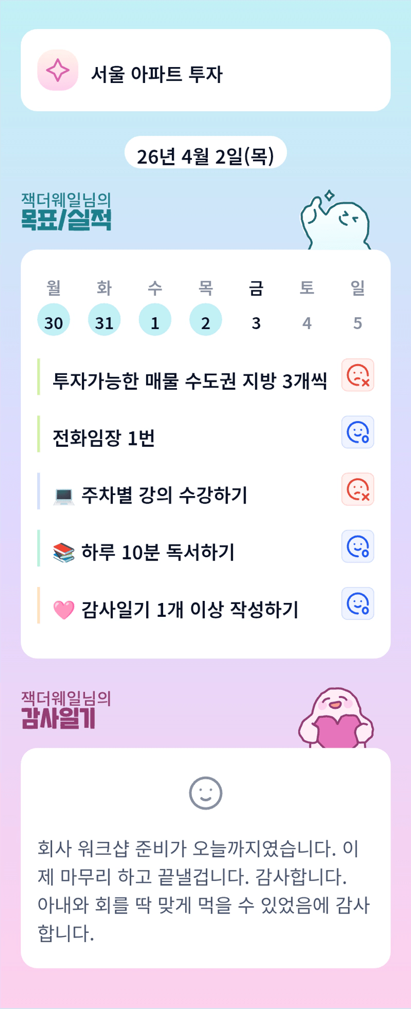 잭님~ 하루 잘 마치셨네요! 고생하셨어요!!