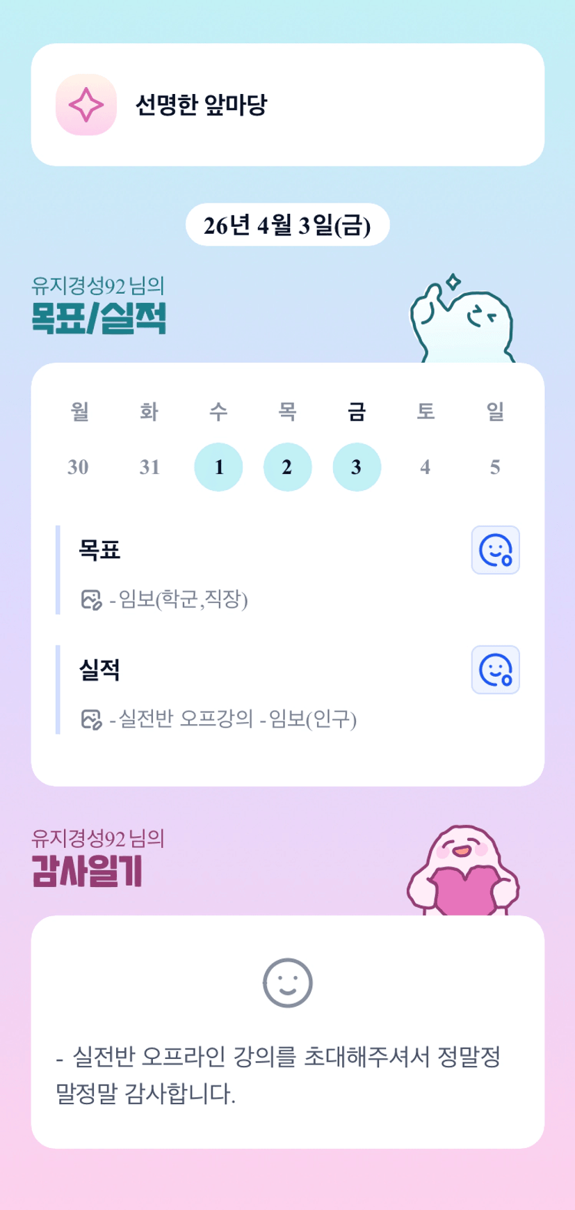 [실준 56기 많이 5(오)를 아파트를 9(구)해 조 _ 유지경성92] 임장마무리 오늘도 수고하셨어요^^🌸