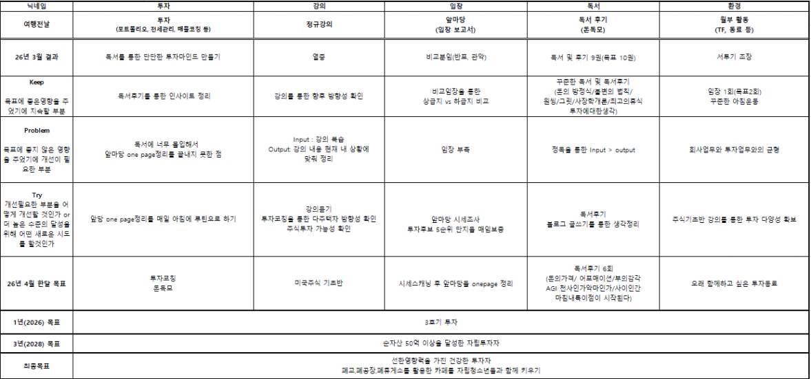 | 투자활동 | 한달 목표 | 실행목표 |