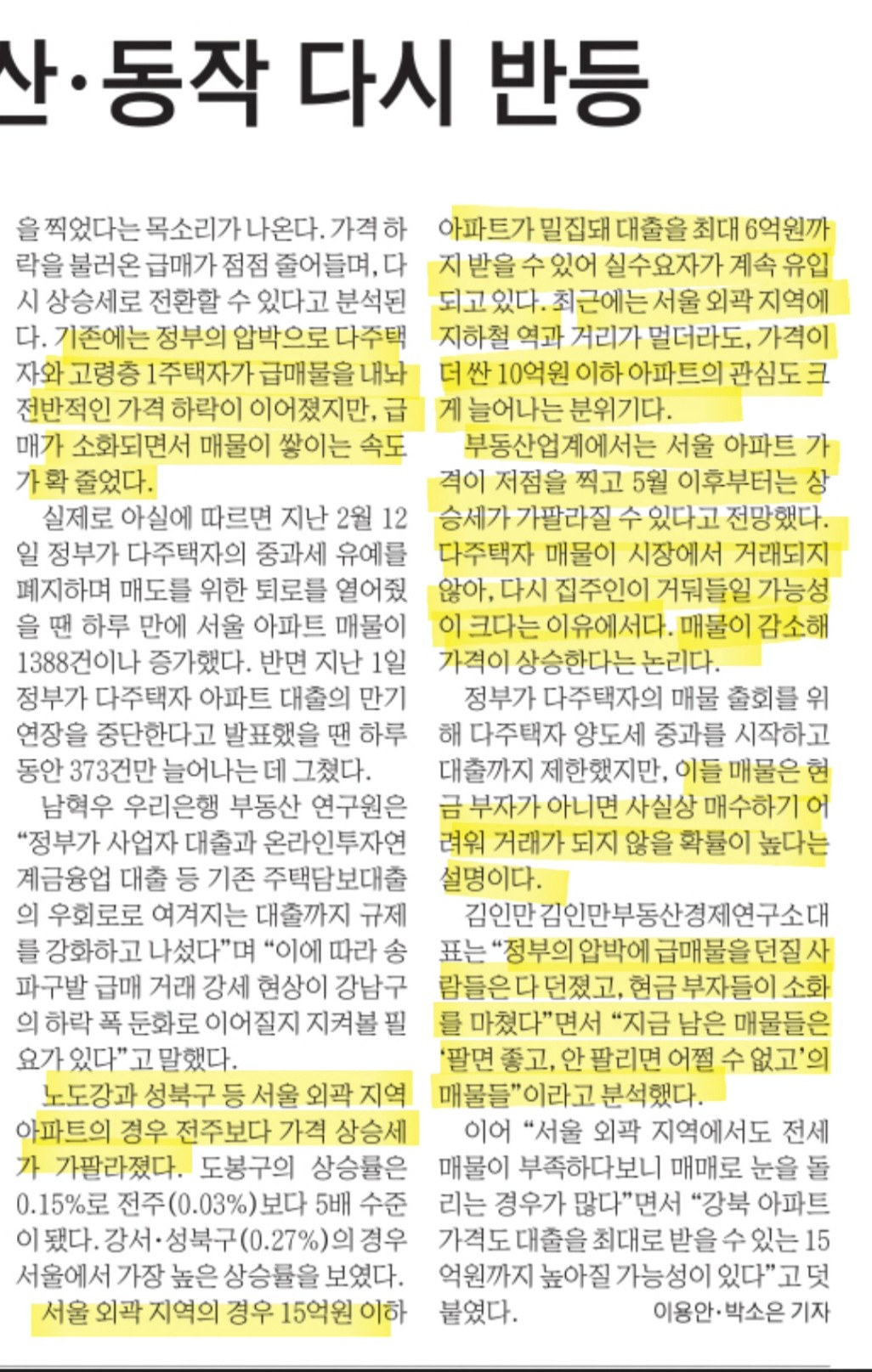 그러나 급매물 줄고 다시 반등 가능성 있음