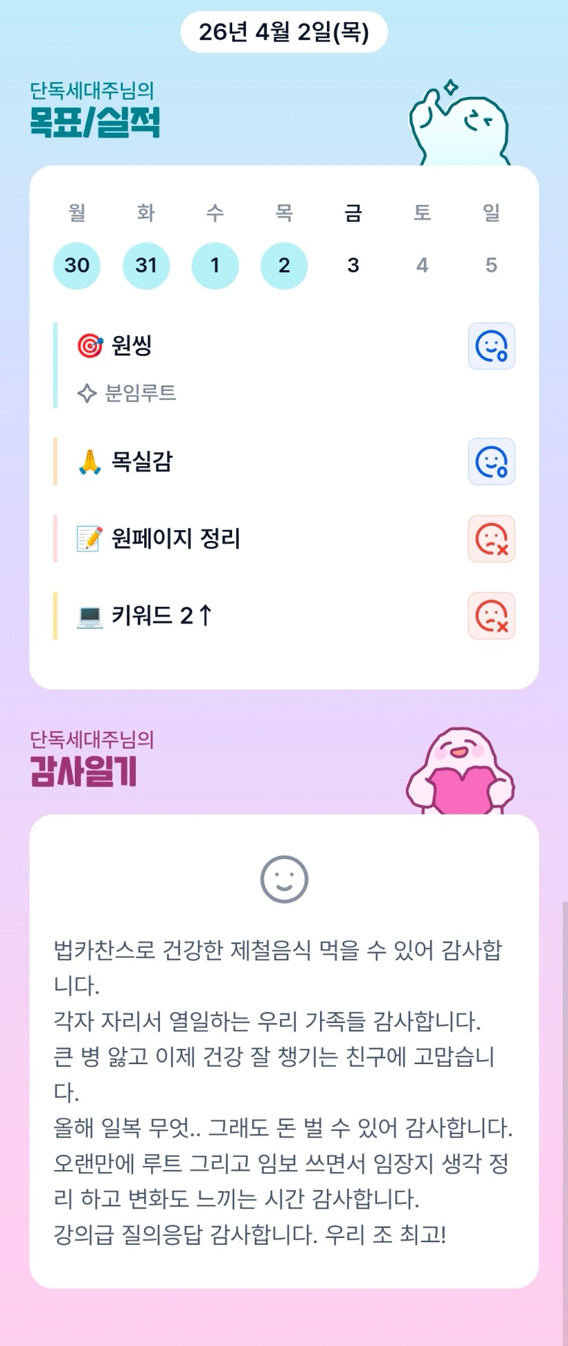 모자라고도 넘치게..!! 첫번째 조장 경험기 [실준51기 성장2취미 임보가특7ㅣ조 단독세대주]