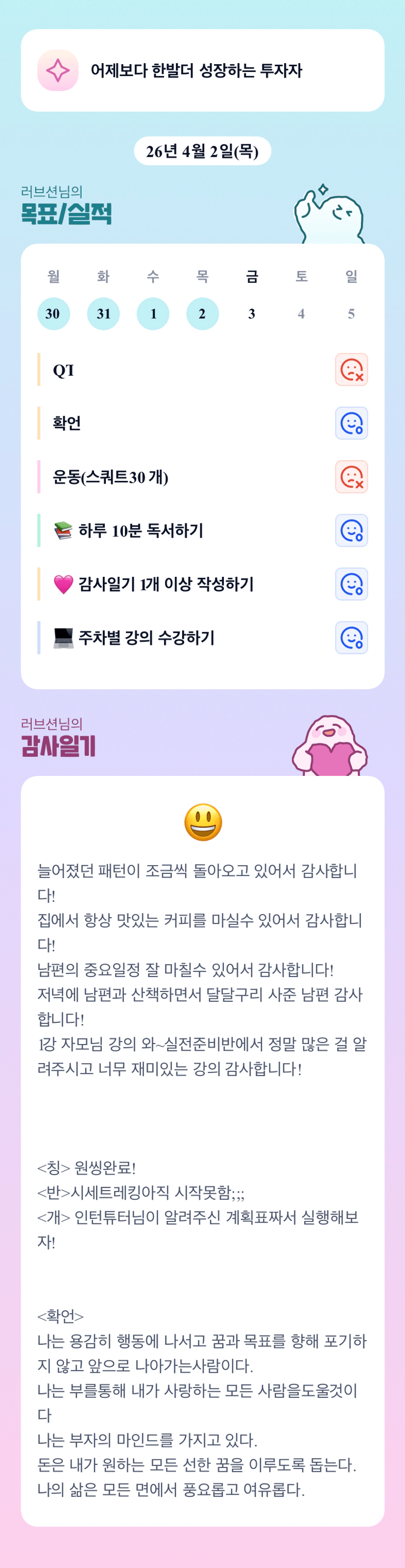 유리공에 대한 사랑이 넘치는 감사일기네요👍 하루 고생 많으셨습니다😀