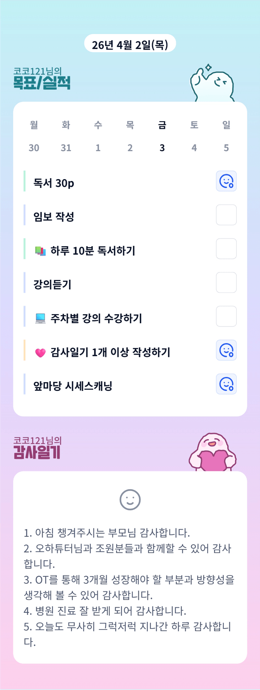 코코님 병원 잘 다녀오셨다니 다행이에요! 건강 잘 챙기면서 3개월 보내봐요☺️