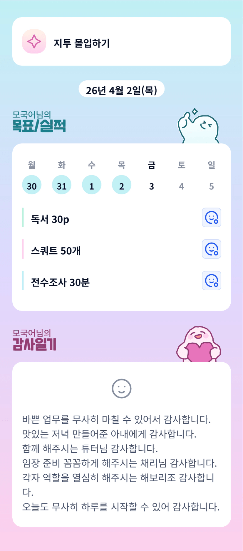 이번달 화이팅!! 입니다^^ 다들 모국어 조장님의 매력에 퐁당 빠지겠군요 ㅎㅎ