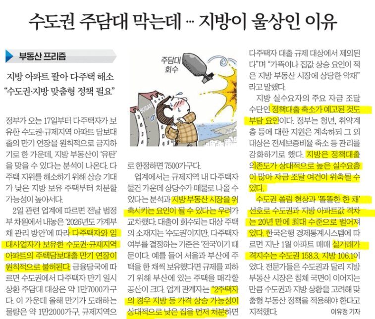 오히려 시장 전체 흐름은 똘똘한 한 채 선호와 정책대출에 따른 실수요 유입이 더 크게 작용하며,