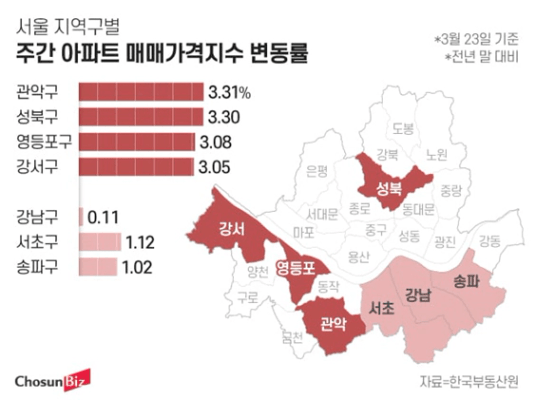 ■관악·성북 3% 뛰고, 강남은 0%대… ‘15억 이하’ 실수요자 몰려
