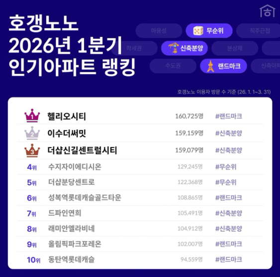 ■호갱노노 1분기 인기 아파트 1위는 가락동 ‘헬리오시티’