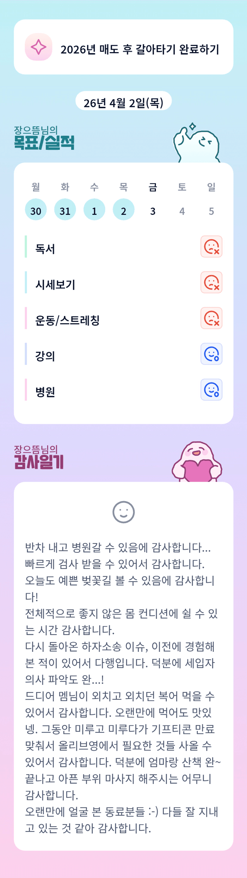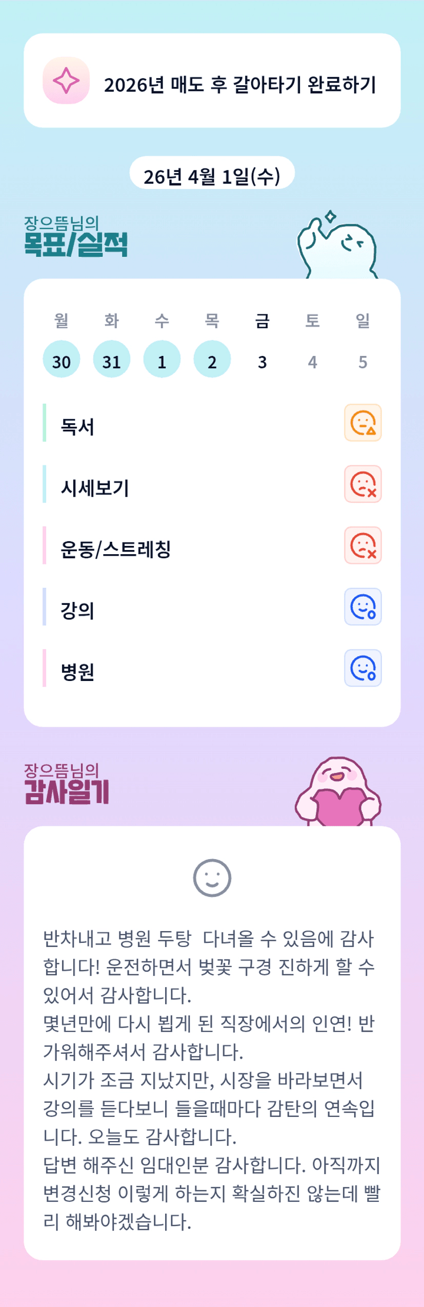 어찌해요?내가 토닥토닥 해드리고 싶네요. 울 멋진 튜터님 4월에도 좋은일만 가득하셔요 ㅎ