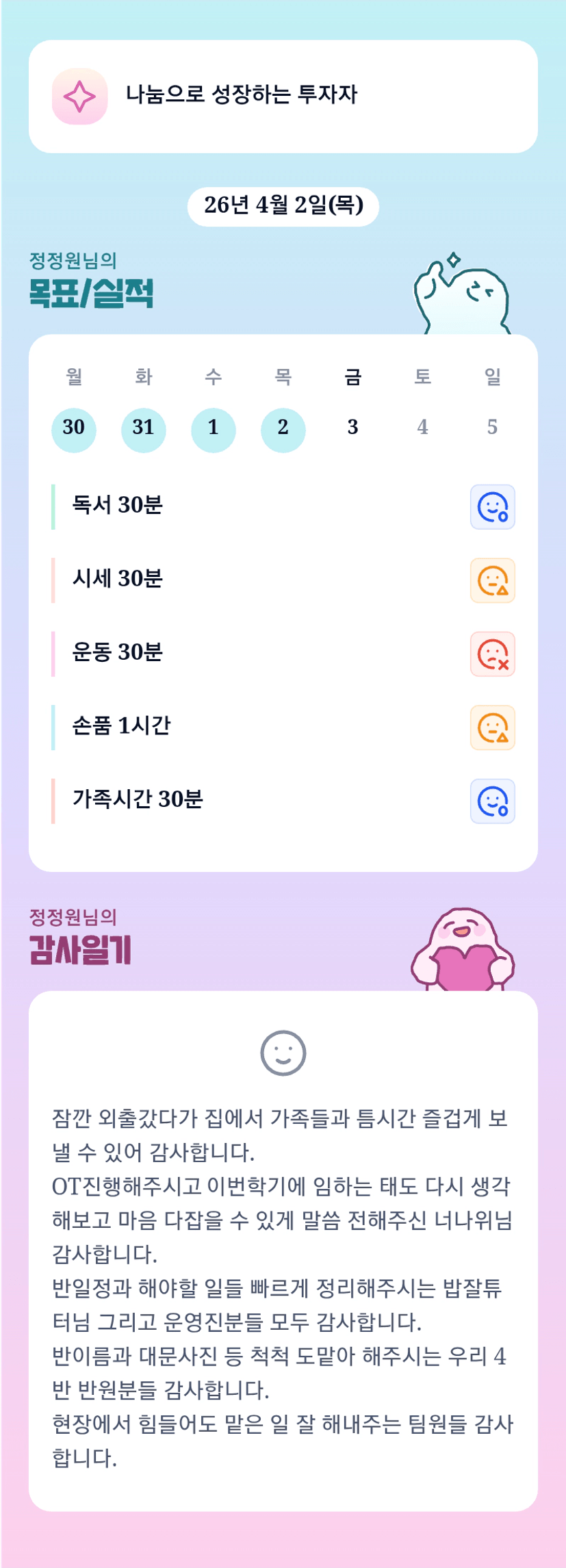 정정원의 비전보드 [열반스쿨 기초반 80기 우ㄹ1는 5늘도 투자자로 성장하조 정정원]