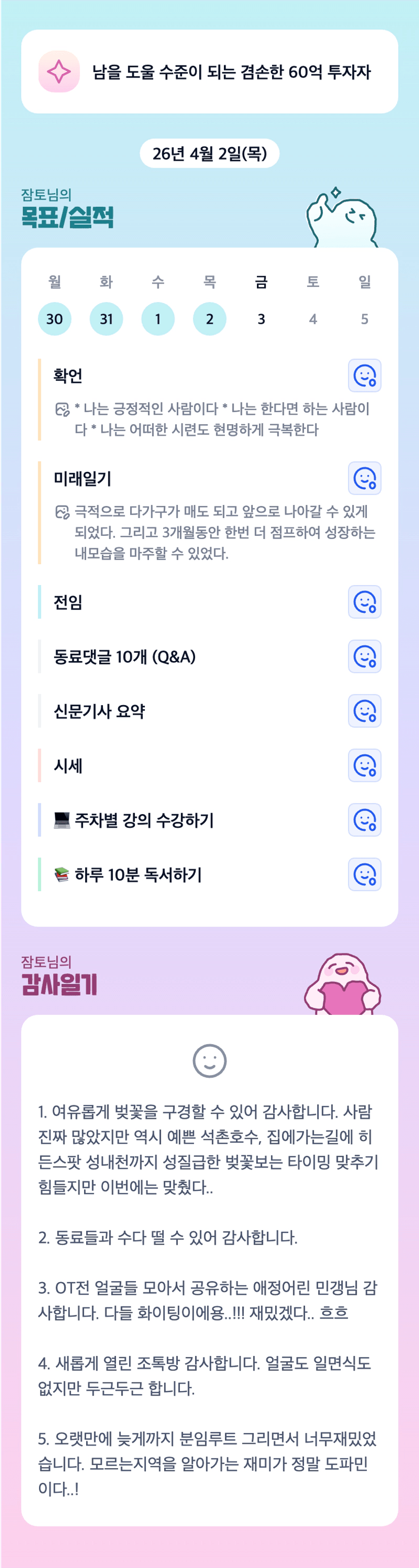 두근두근한 새로운 배움! 4월도 더 멋져질 잠토님 응원합니다. ^^