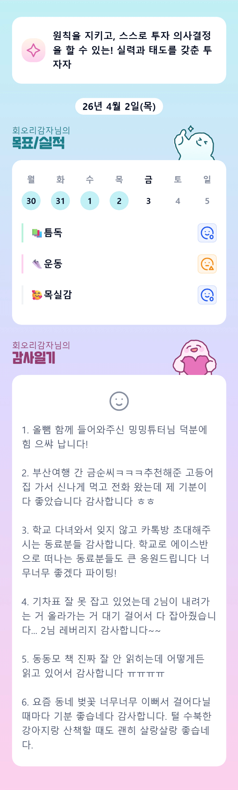 감뿌님 목실감 읽으면 하루가 즐겁게 느껴집니다 ^^ 목실감 댓글도 다 달아주시고 👍👍👍