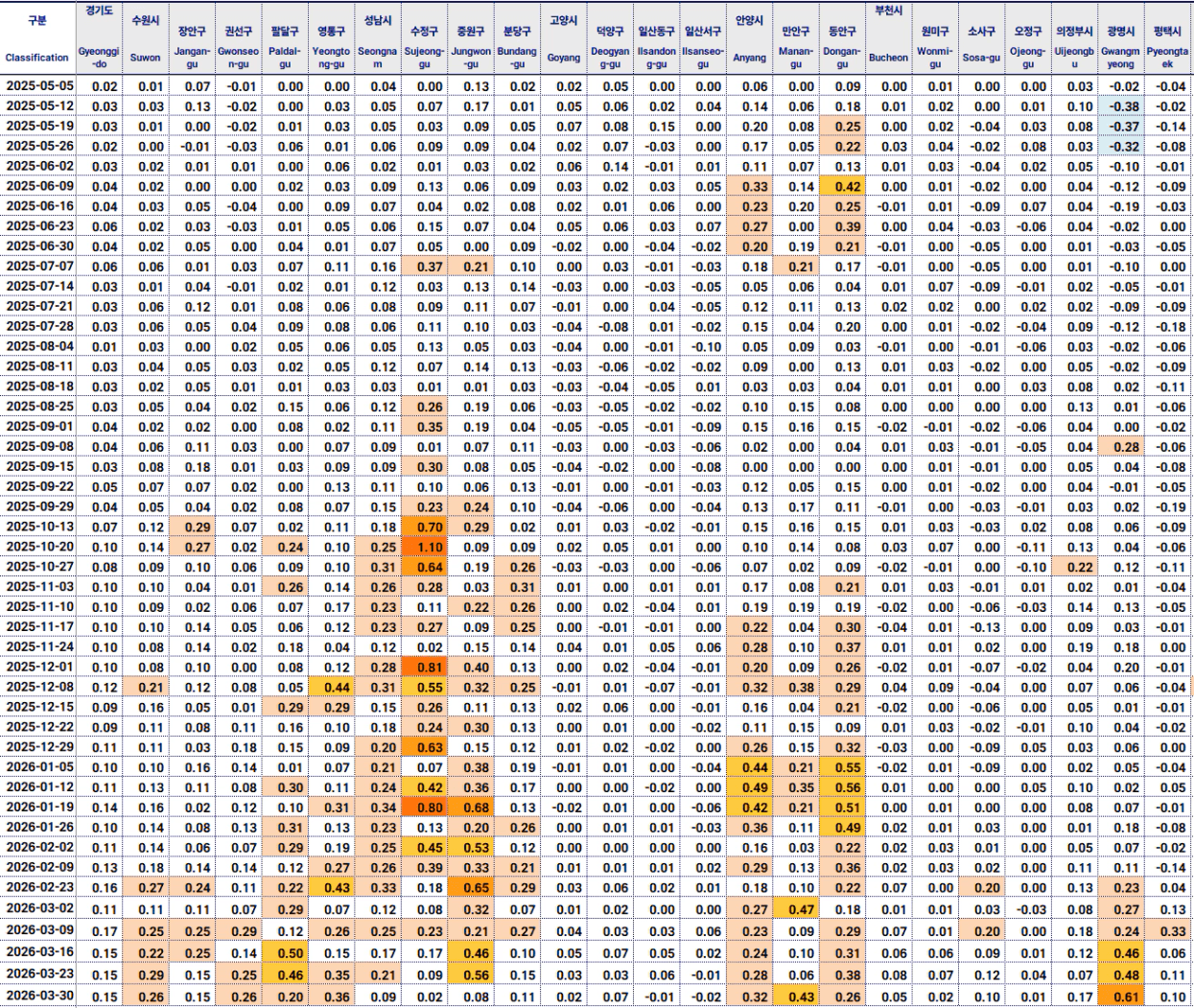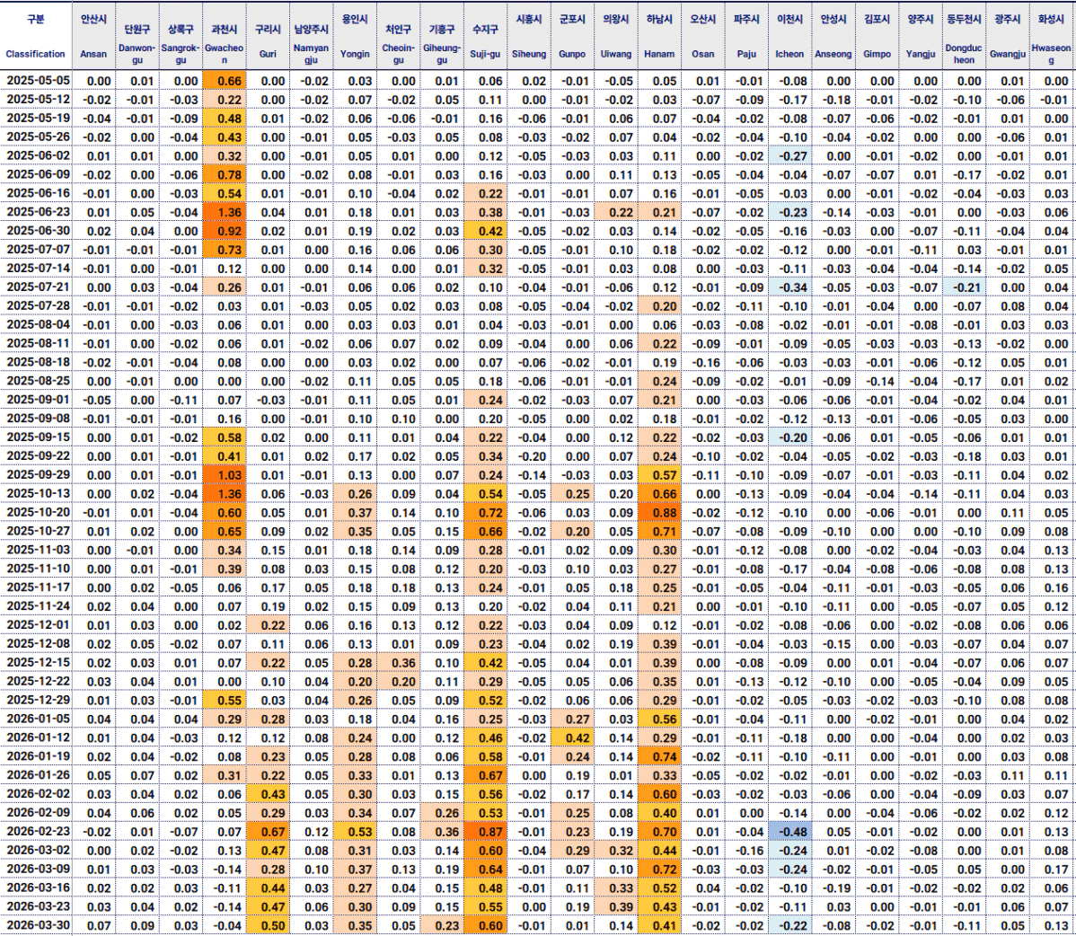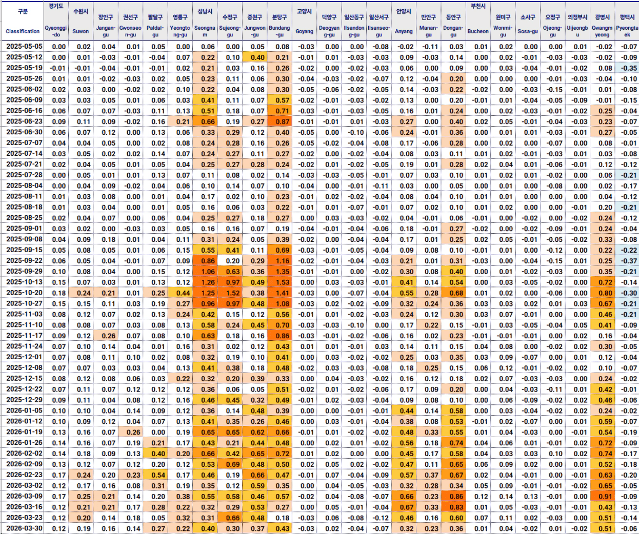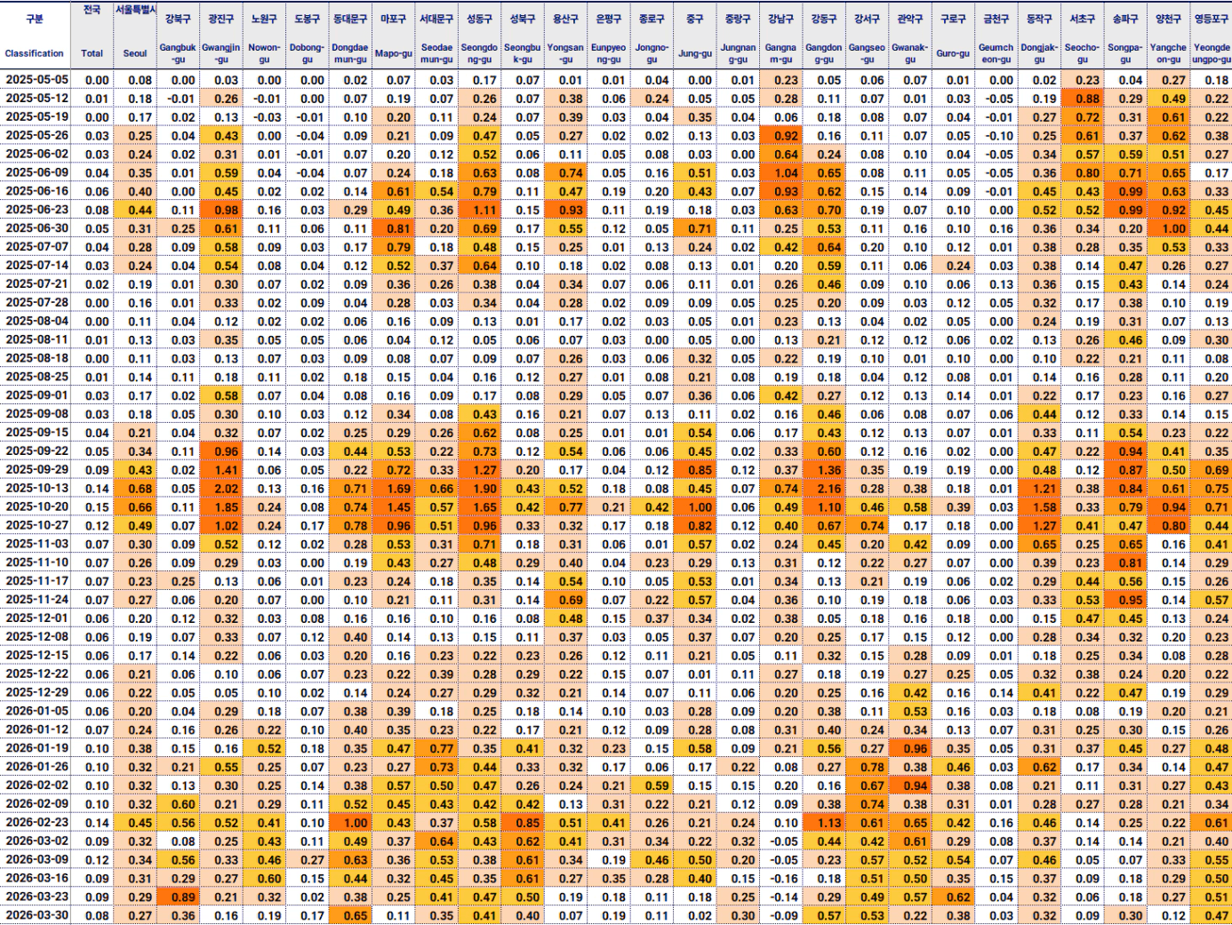 ※ [KB리브온] 지역별 집값 상승률(매매/전세 시계열) : 매주 금요일 업데이트