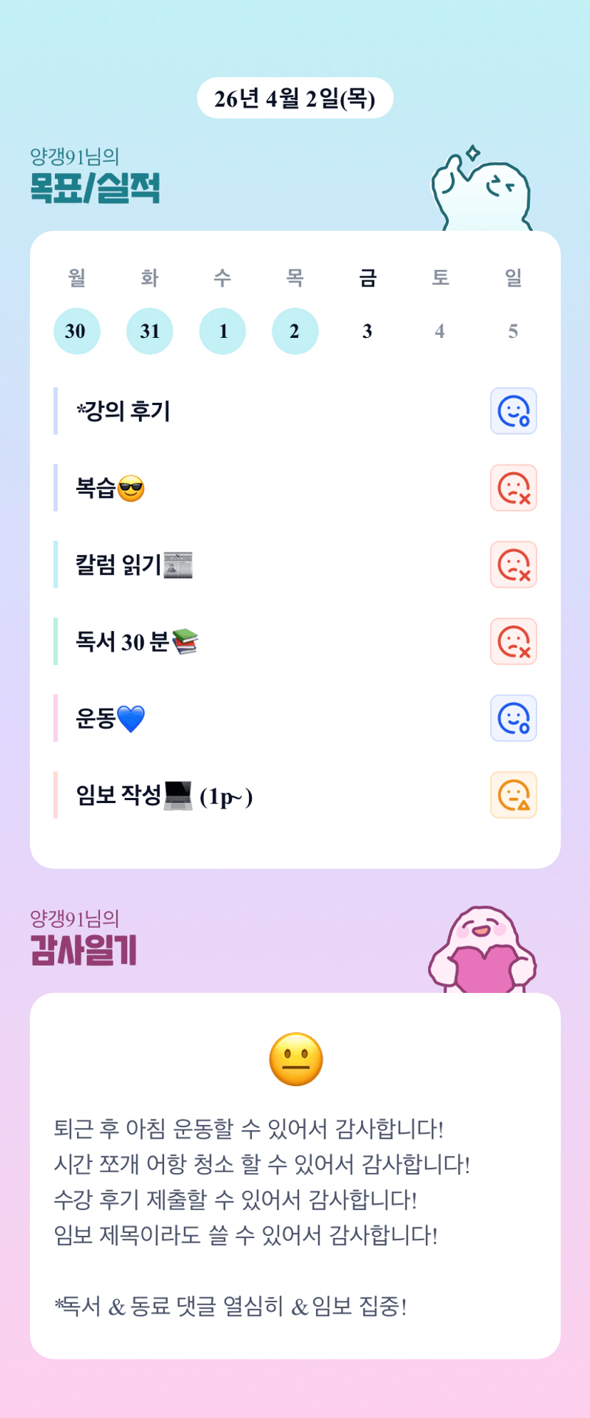 하루 잘 쪼개서 사용하시는 양갱님 화이팅입니닷!!