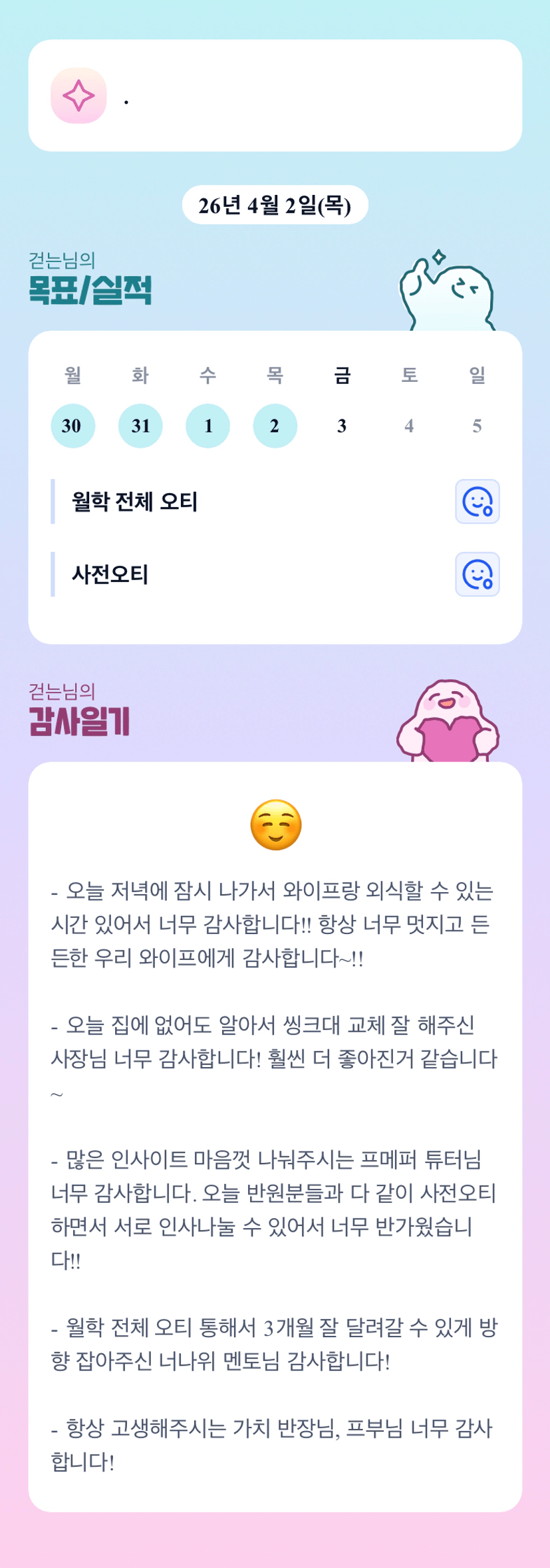 걷부님 잘부탁드립니다! 있다가 뵈어요!