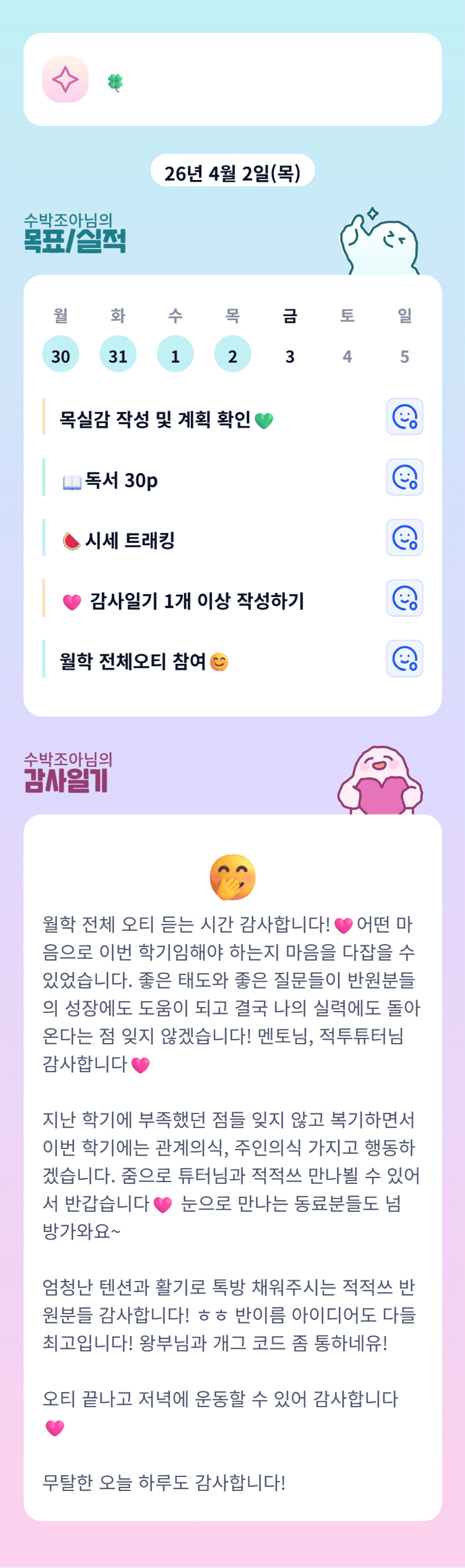 수박조장님 오티 때 얼굴 뵈어서 반가웠어요💜