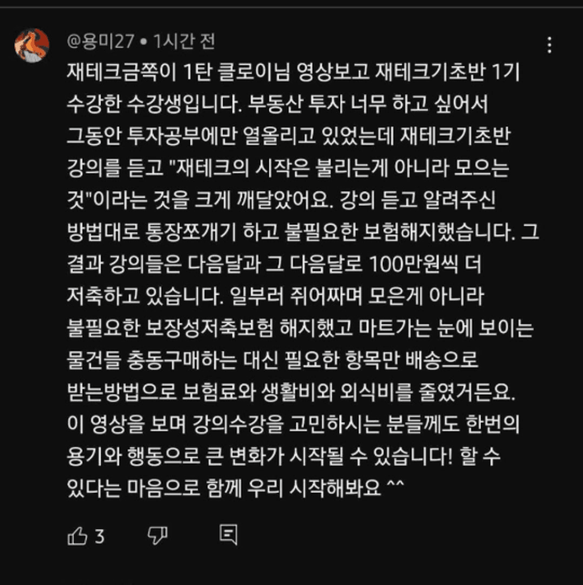 ๋๋ถ๋ถ์ ์ด๋ ๊ฒ ๋งํฉ๋๋ค. โ1์ต ๋ชจ์ผ๊ณ ๋์ ๊ณต๋ถํ ๊ฒ์โ
