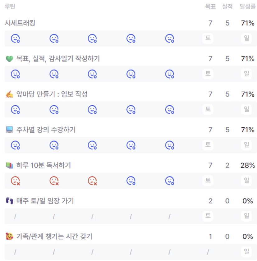2️⃣ 이번 주 목실감을 작성하면서 느낀점과 더불어 한 주 스스로 어떻게 지냈는지 간단한 회고를 적어보아요 :)