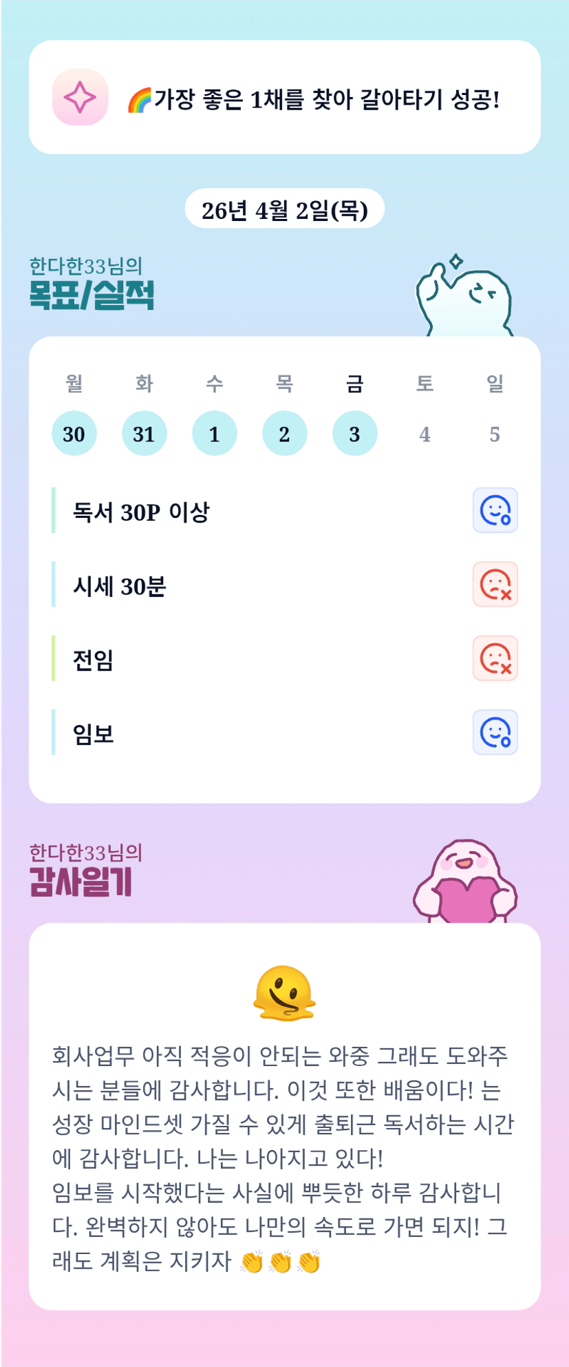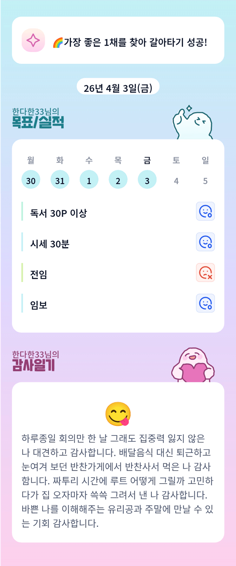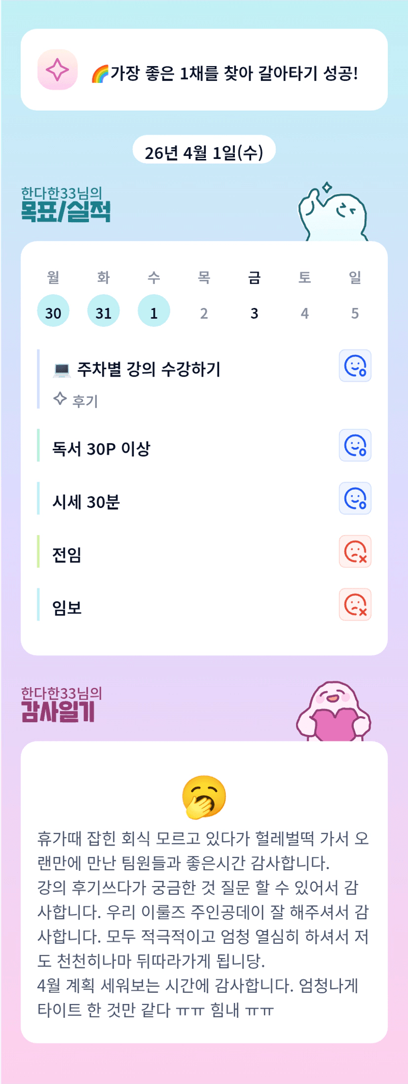 4월말 목표를 이룬 한다님이 전해달라고 하시네요 할 수 있다!!ㅎㅎ