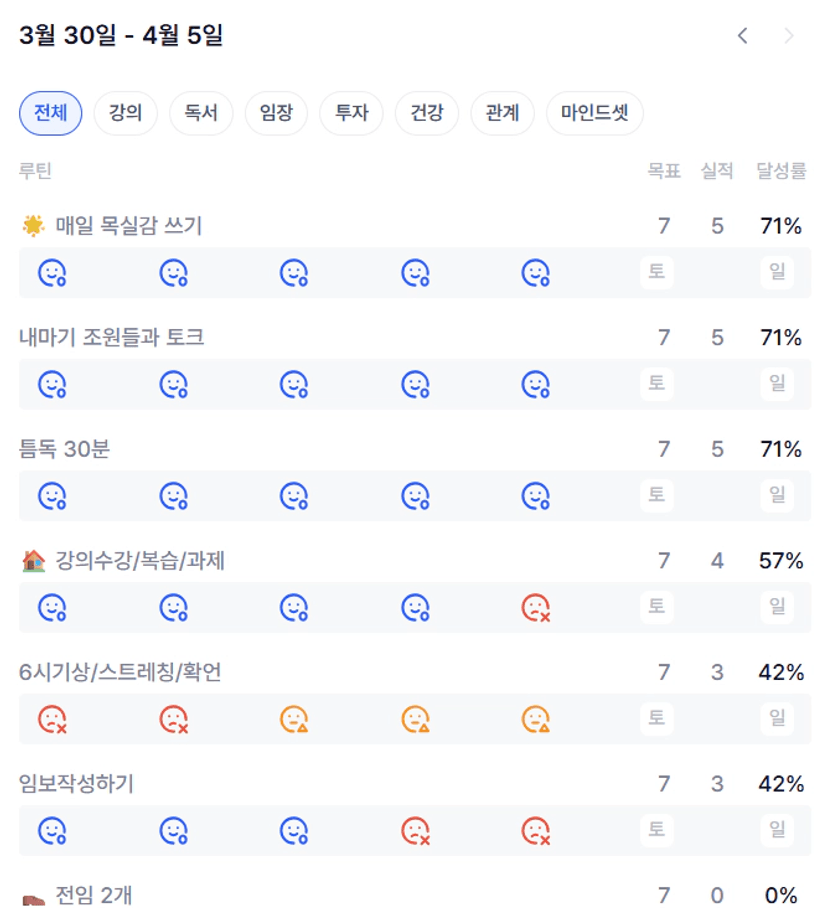 2️⃣ 이번 주 목실감을 작성하면서 느낀점과 더불어 한 주 스스로 어떻게 지냈는지 간단한 회고를 적어보아요 :)