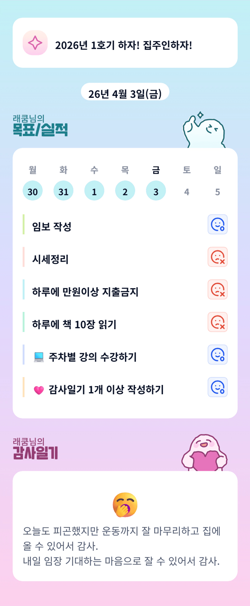 운동은 자꾸 밀리는데 마무리하신 래쿰님^^ 고생하셨어요!!