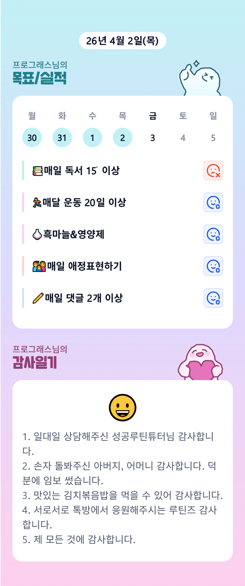 매일 애정표현하기란을 보며 가정에도 충실하려 노력하시는 프로님! 멋지십니닷😉