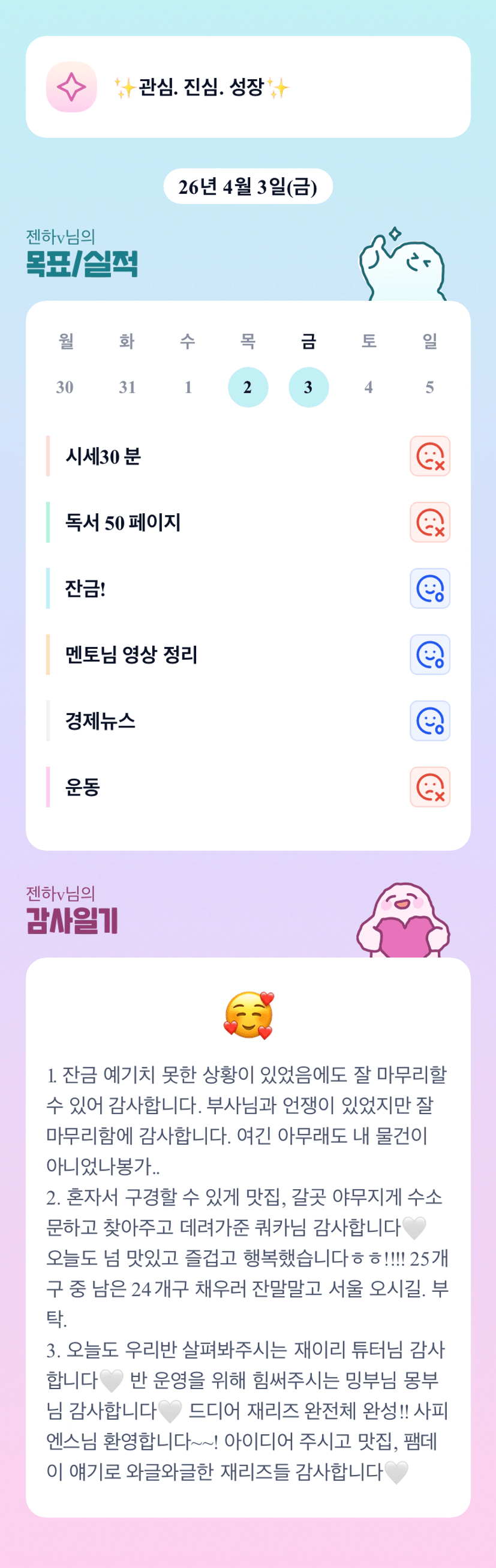 잔금까지 차분히 잘해내시고 봄학기까지 야무지게 시작하시는 젠하조장님 완벽 👍 화이팅!!