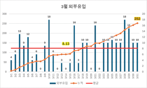 3월 한 달 동안 외부유입 양을 늘리면서
