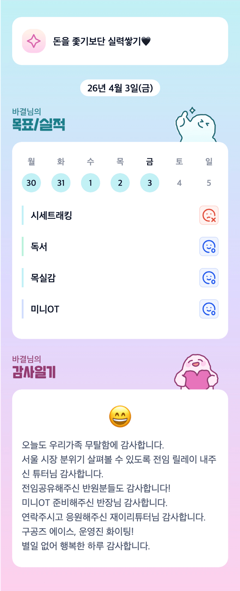 [서기10기 서울2(투)자 우리꺼! 발품 8러 가시조 바결] 성장에도 종류가 있다! 이번달에 내가 한 성장_조장 복기