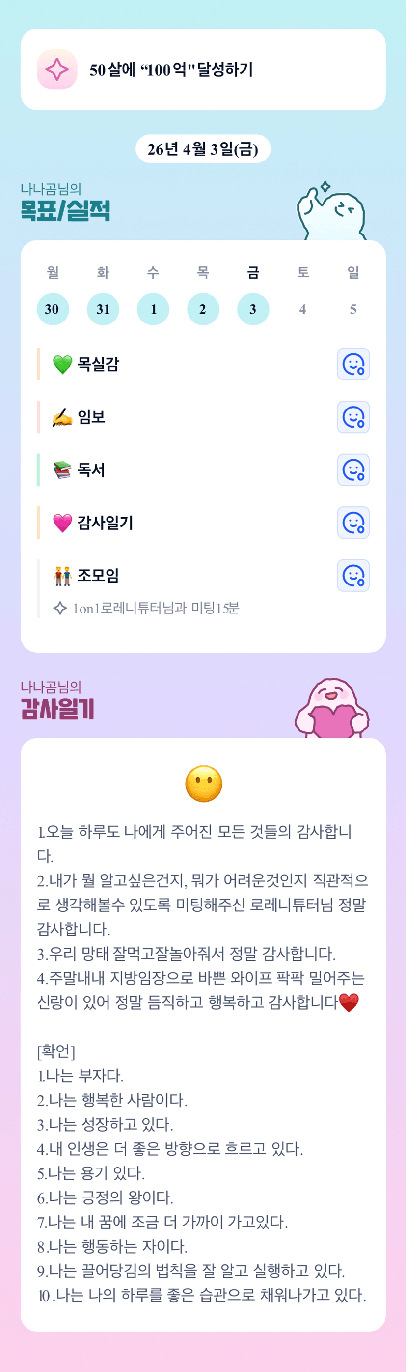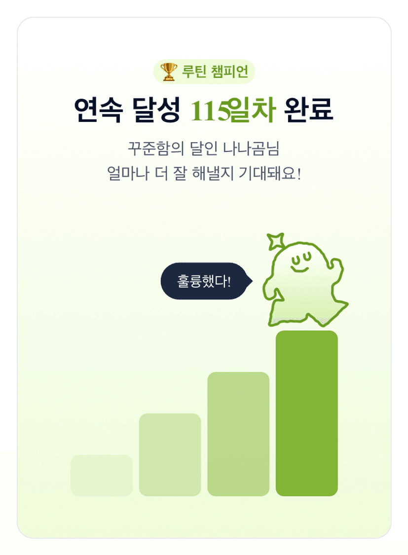 나나곰님 역시 잘 해내고 계시네요! 4월도 폭풍성장 가즈아!!!!!