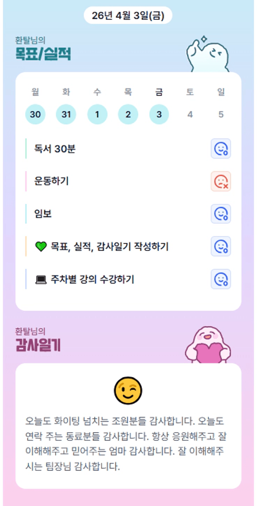 늘 응원해주시는 조장님 감사합니다!! 오늘도 안전 임장하고 오세용