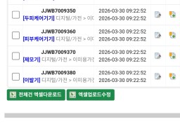 엑셀 마이카테 파일에서 직접 수정 또는 신규마이카테 추가하고 웹유플렛에 등록이나 수정 업로드하신 경우는 이미 엑셀에 반영되어 있어서 다운로드가 필요없습니다. 웹유플렛 ㅡ 마이카테관리에서 직접 등록 수정하신 경우에만 엑셀파일을 다운로드하시면 되어요 웹유플렛 ㅡ 마이카테 ㅡ 화면 왼쪽 하단에 보시면 마이카테엑셀 다운로드 보이실 거예요 사진 참고하세요