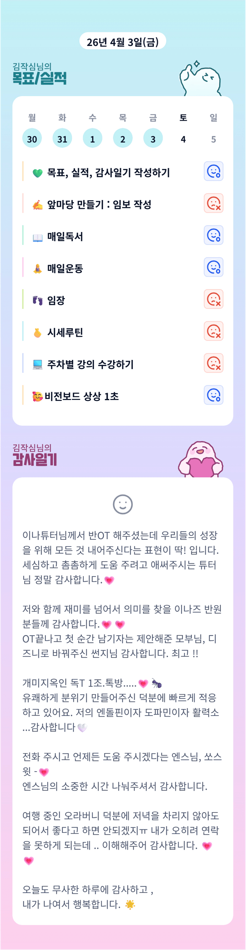 작심님!!! 랄라님, 아가님이랑 같은 반이시군요♡ 화이팅입니다!!!!