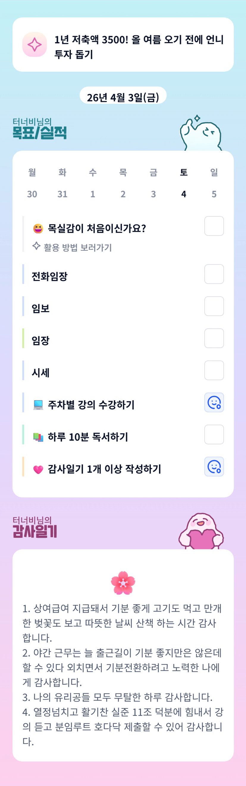너비님!!! 항상 긍정으로 감사함을 마무리하시네요^^ 이제따뜻해지는 4월이네요.. ㅎㅎ 즐겁게 한달 잘 보내보시죠... 저도 응원드립니다^^ 터너비님!! 화이팅~~~~