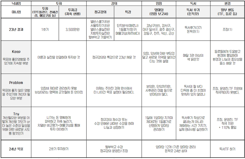 [미니잉] 23년 복기 및 24년 계획 KPT