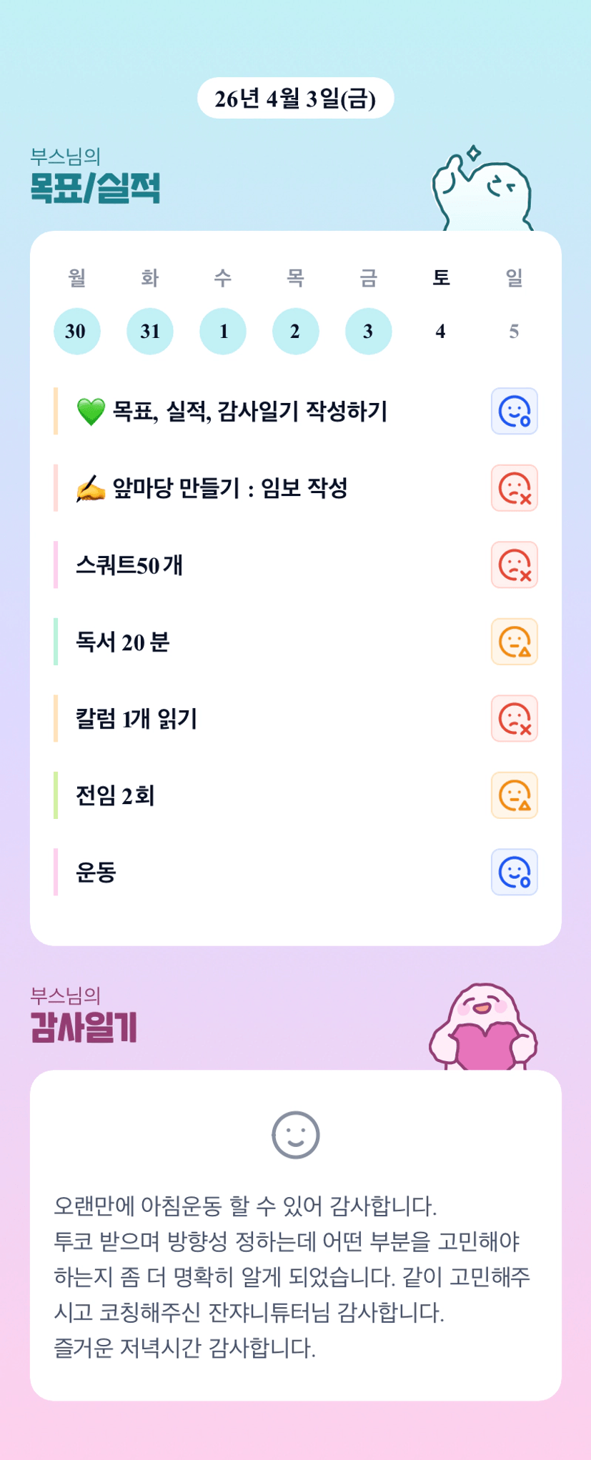 이침운동 대단하세요!! 잔쟈니 튜터님 투코라니 후기가 궁금합니다~~~