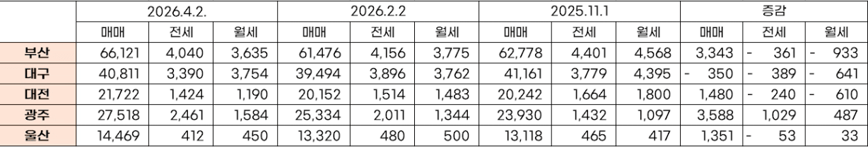 광주는 25년 11월과 비교하면 전세가 1000개 넘게 증가했는데