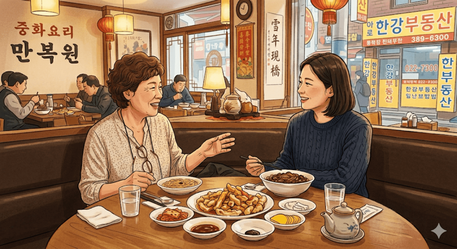 제가 부사님과 중국집 코스요리를 앞에 두고 있더라고요.