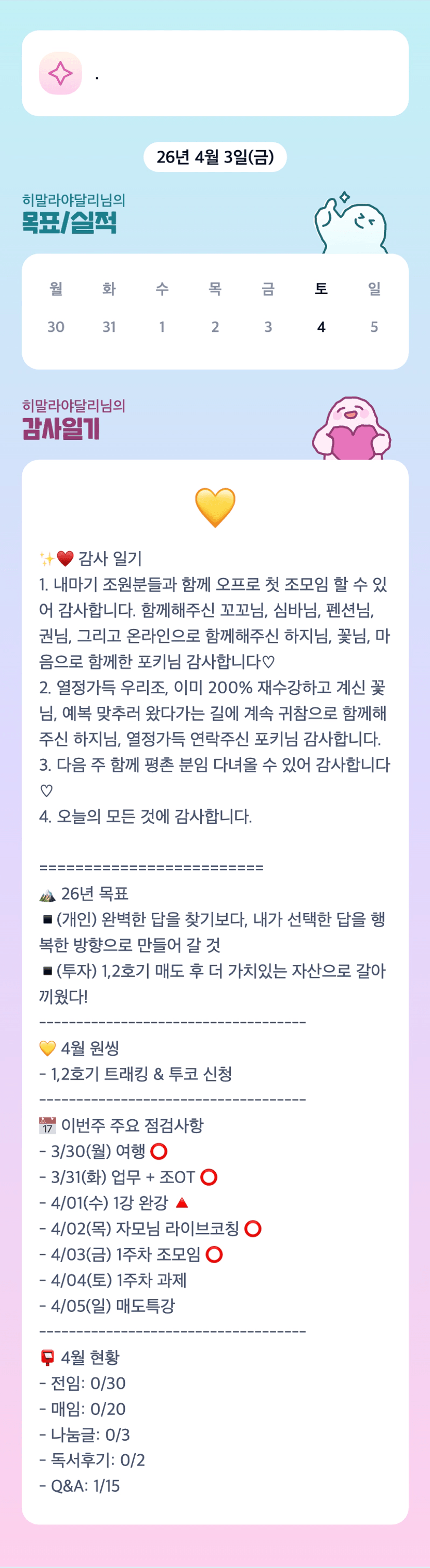 달리조장님 뽜팅😆