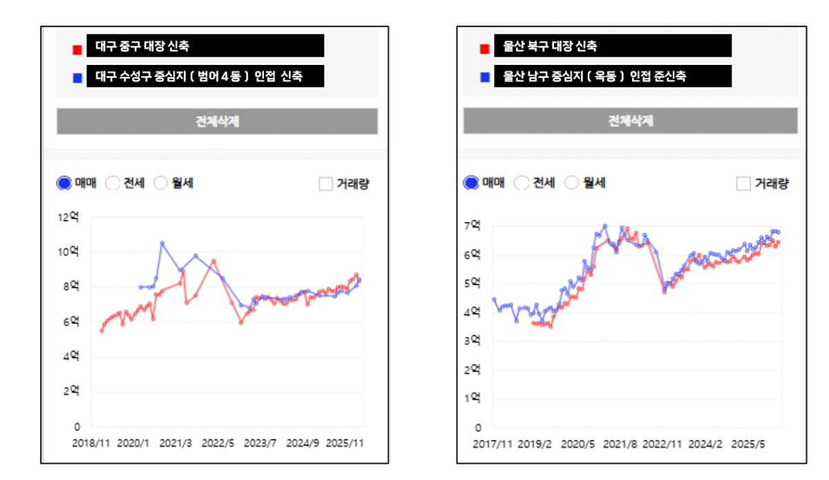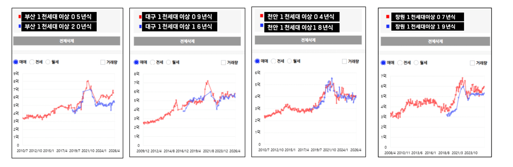 신축이 모인 곳은 선호도가 확실히 높습니다.