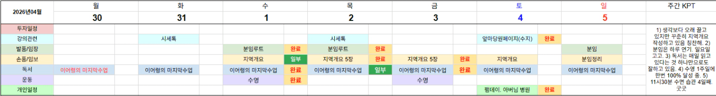 단임 완료하기. 수영 1번하기. 앞마당 원페이지(평촌. 구성남. 구리)